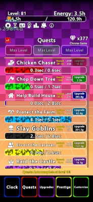 Gain energy by tapping the chrono clock or let your generators work for you. Perfect for casual play or deep optimization!