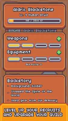 Your guild never sleeps! Adventurers continue completing operations, Hirelings fulfil Orders, and resources accumulate even when you're offline. Return to find your coffers full and your guild ready for the next phase of expansion.