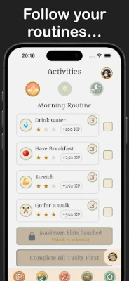 Idle Habits is a habit tracker RPG that transforms your everyday tasks into epic quests. Every morning, completing your real-life routine powers up your hero and sends them on an adventure. They'll spend the day fighting monsters, helping magical creatures, and gathering materials. At night, finishing your evening routine lets you collect the rewards.