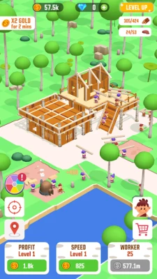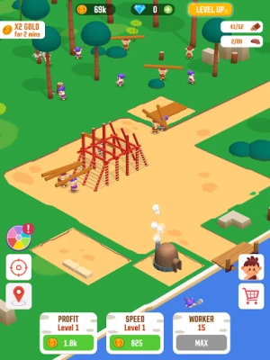 In this builder simulator game, you can tap to earn coins and diamonds. The more coins you possess, the more resources you are likely to gain. Wisely assign workers with different tasks, from brick making, lumberjacking, to house building. You are in total control of managing the process to optimize workflow and get the houses built as perfectly as possible.