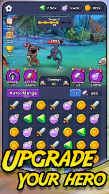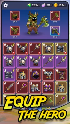 Your hero attacks on their own — you control the progression. Defeat enemies and earn hammers used to power up your hero.