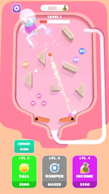 Buy new balls, make money on each hit! Merge the balls and make more money, buy bumpers and unlock new features. Try to reach to the next level by hitting on the walls!