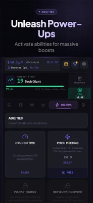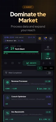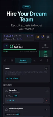 Idle Startup Tycoon is an incremental clicker game where you build a tech company from zero to trillion-dollar valuation. Tap to write code, upgrade your tech stack, hire automated teams, unlock research breakthroughs, and scale through 7 iconic startup stages. Strategic prestige runs compound your power permanently.