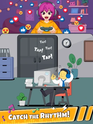 Join the streaming legends! Master different rhythms, gain fans and earn rewards. Use them to upgrade your streamer room and character’s appearance.