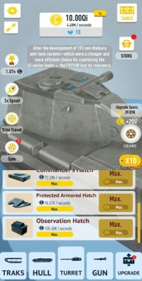 In this clicker simulator, your goal is simple: become the famous general with the biggest army in the world! Every tank earns money, even when you are offline. Therefore, upgrade war machines and unlock better ones to build the most powerful army in the world. ๐ The purpose of the game is to have fun and collect all historically accurate tanks. Choose your strategy and relax. Enjoy the addictive idle tank game. Are you ready to rumble? ๐ช