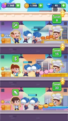 Earn idle cash as products are sold, then upgrade your kitchen and factories.