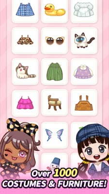 - Hair, tops, bottoms, face, skin color, pets, stickers, furniture, wallpaper, tiles, and more!