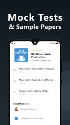 Unique app for IELTS preparation app which will provide study material, IELTS related books and notes, IELTS solved papers, IELTS Mock tests, Speaking reading writing & listening tips for IELTS exam.