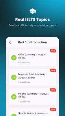 You work with real IELTS Speaking topics and questions.