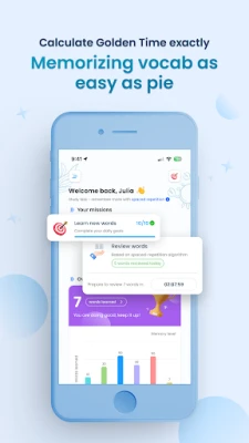 + Golden Time Reminder: Optimize your vocabulary retention with our precise review timing, calculated using the Spaced Repetition Algorithm for 6 word levels - Level 1 to Master.