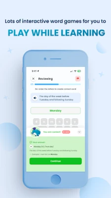 + Gamification: Lots of interactive word games for you to play while learning such as anagram, quiz, spelling.