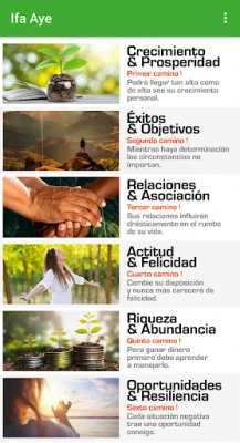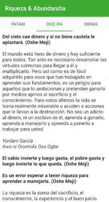 Aplicación desarrollada con la intención de profundizar en las enseñanzas de Ifá en relación al éxito y la abundancia en las principales áreas de la vida del ser humano.