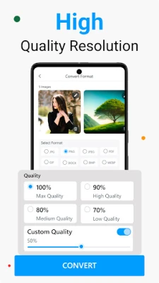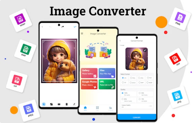 The app features a simple, easy-to-use interface. Just select your image, choose the desired format , and click convert. The process completes within seconds.