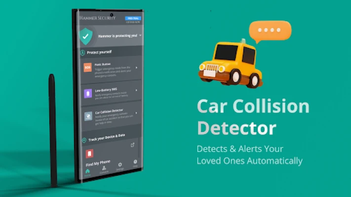 The Hammer Security - Family Safety app ensures automatic SOS in 80% of emergencies when there's no time to manually trigger it.