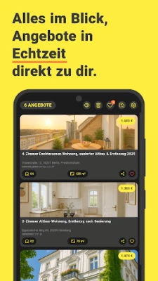 The app automatically searches the largest real estate portals in Germany and sends you matching apartment offers via push notification. No constant refreshing. No wasted time.
