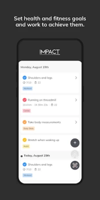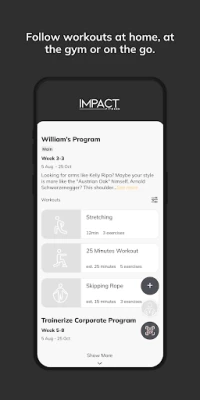 With the IMPACT FLEXIBLE App, you will have access to workout programs designed specifically to help you reach your fitness and health goals! You can follow & track your workouts, your nutrition, your lifestyle habits, measurements and results–all with the help of your coach.