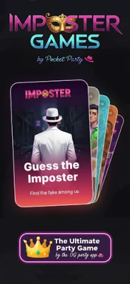 Imposter Games by Pocket Party is a 5-in-1 offline party game where you and your friends try to find the imposter in hilarious real-life rounds. Gather 3–10 players around one phone and jump into fast, face-to-face social deduction games perfect for game night, parties, or family hangouts.