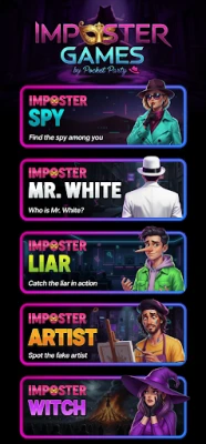 Download Imposter Games by Pocket Party and see which of your friends is the best liar, spy, or witch.