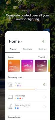The in-lite app for iOS and Android makes outdoor lighting an even more integral part of your daily life. After all, it lets you easily organise and manage your Smart outdoor lighting. Create your own unique ambiance with the Scenes function. One press of the button and you can set your outdoor lighting to just the right colour or dim it for a romantic evening for two. And how about setting routines? This way, your outdoor lighting will never again be switched on unnecessarily.