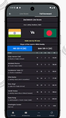 The app has the best user-friendly interface that makes navigating and accessing the live Cricket scorecard and content effortless.