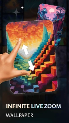 The app collection of beautifully designed live wallpapers with continuous zoom animations. Each wallpaper is crafted to create the illusion of infinite depth, making your screen feel dynamic and alive. From nature landscapes and fantasy worlds to abstract and futuristic visuals, Infinite Live Zoom Wallpaper delivers a premium visual experience.