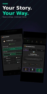 This is what makes Influence different. Before every adventure, you pack a bag with Influencers - special items that can twist, derail, or completely transform your story. A time-freeze potion in a horror scenario. A talking parrot in a medieval war. A cursed coin in a detective mystery. Use them at critical moments to change your fate in ways nobody saw coming.