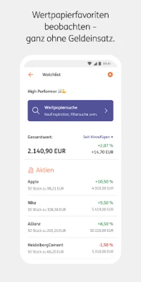 - Wertpapiere kaufen oder verkaufen und deren Entwicklung in interaktiven Charts sehen.