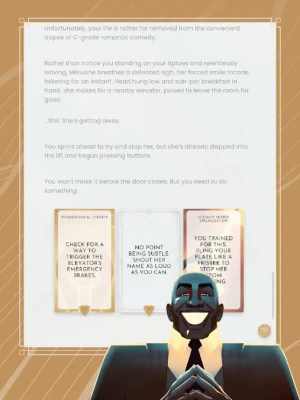 With hundreds of possible story routes, multiple endings, interactive puzzles and RPG elements, INHUMAN RESOURCES aims to elevate the traditional reading experience to more immersive, engaging heights, without forgoing the satisfaction of a well-crafted story.
