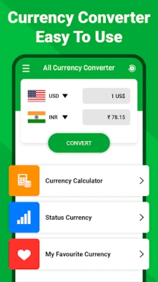 Three simple screens offer a choice of all currencies, your own selection of personal currencies or just one currency to be converted at a time.