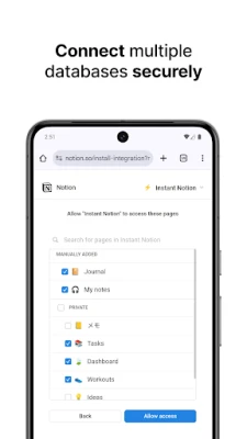 Quick: it only takes seconds to write and tag a note Secure: use the official Notion authorisation method, without generating your tokens manually. Your data is transmitted directly to Notion. Offline: notes saved without internet connection will be sent later.