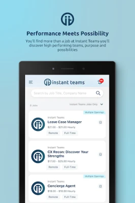 Become part of our mission-driven teams! When you work for Instant Teams, you are supporting our customer teams to deliver exceptional customer experience by tackling challenges head-on to create real impact. We hire high-performing, passionate professionals who are ready to contribute their expertise while being supported by a dynamic and collaborative environment.