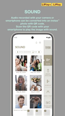Sound recorded with your camera or smartphone can be converted into an instax™ photo with QR code.