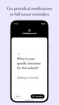 Intenty helps you build a healthier relationship with your phone through gentle awareness prompts that appear right when you need them – at unlock. No blockers, no limits, just mindful choices.