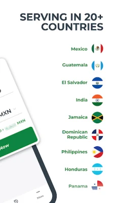 • Transfer to Argentina, Bolivia, Brazil, Chile, Colombia, Costa Rica, Ecuador, Guatemala, Honduras, India, Jamaica, Mexico, Nicaragua, Panama, Peru, Philippines, Dominican Republic, El Salvador, and Vietnam from our App.