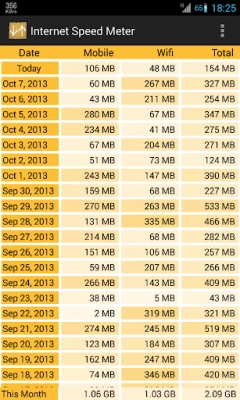 Internet Speed Meter displays your internet speed in status bar and shows the amount of data used in notification pane. This helps you to monitor network connection anytime while using your device.