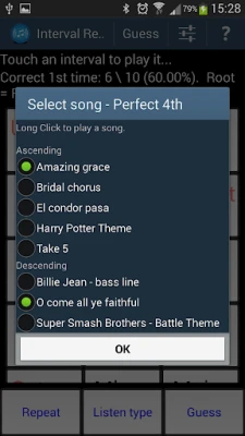 Continuous Play - repeat question a set number of times then display the answer before moving on to the next one. Optional text to speech for announcing the root note and answers. Basic speech recognition for entirely hands free use.