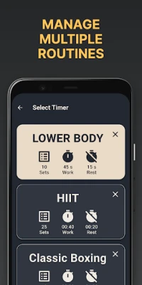 - Custom Routine Setup: Freely adjust the number of sets, workout time, and rest time to fit your personal routines.