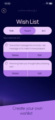 Ignite passion with **Intimately: Couples Game**, the ultimate app for personalized love challenges. Deepen your bond with heartfelt questions, exciting dares, and a discreet wishlist for sharing fantasies. Perfect for cozy date nights or long-distance romance!