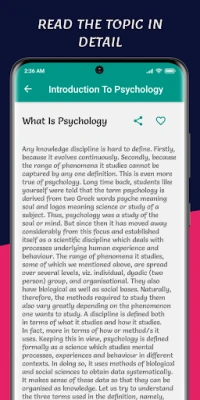 Introduction to Psychology app provides you useful information about Psychology. This app is designed for students, teachers and general readers who want to learn Psychology.