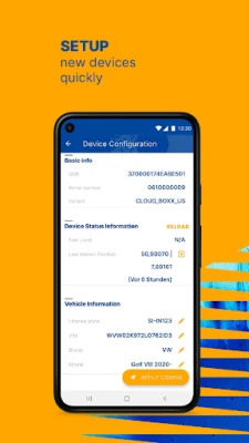 Simply follow the workflow in the app to set-up your telematics devices. Your smartphone is all you need.