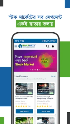 INVESMATE App-এ থাকছে বিভিন্ন Features যা আপনাকে দেবে ট্রেডিং এবং ইনভেস্টিং সম্পর্কিত সমস্ত রকম Learning Assistance। এই App-এর সাহায্যে আপনি পাবেন সরাসরি Market Professionals-দের কাছ থেকে স্টক মার্কেটের সমস্ত খুঁটিনাটি Practical Approach-এর মাধ্যমে শেখার সুযোগ।