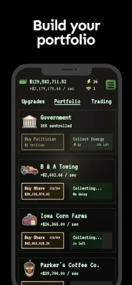 BUILD YOUR EMPIRE Start out with a single share of the local towing company. Collect profits and continue to buy shares in bigger businesses. As you grow your portfolio, hire managers and consultants to optimize businesses and earn more money faster.
