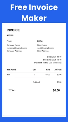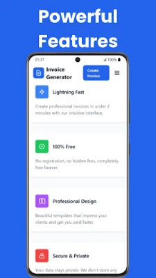 • Secure and Private: Just like our web platform, all invoice generation happens locally on your device. We prioritize your privacy and do not store your invoice data on our servers.