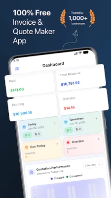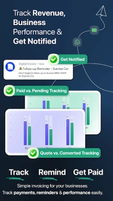 Generate PDF invoices, share instantly on WhatsApp/email, track payments, and send smart reminders for pending & overdue invoices.