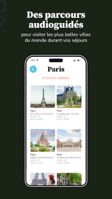 Accédez aux parcours audioguidés pour visiter les villes du monde.