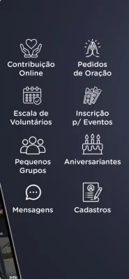 Através do App você pode realizar várias atividades para se relacionar com a Igreja, como: