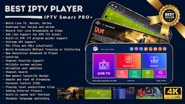 - With IPTV Smart Player, you can easily watch live broadcasts, sports events, current movies, the latest seasons, and TV shows in high definition on Android phones, tablets, Android TVs, and Chromebooks without any lag.