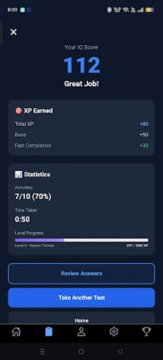 Unlike other apps that offer random riddles, our tests are structured to mimic real standardized IQ assessments while still keeping training fun with modes like One‑Stroke. We focus on measurable improvement, providing you with the tools to train your brain effectively.