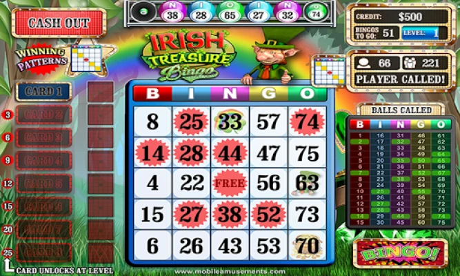 Irish Treasure Rainbow Bingo the Irish themed Bingo game from Mobile Amusements where you can win a virtual cash fortune!