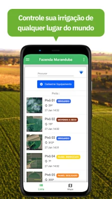 Controle e monitore seus sistemas de irrigação à distância em qualquer parte do mundo, usando este aplicativo ou através da Central Irricontrol.